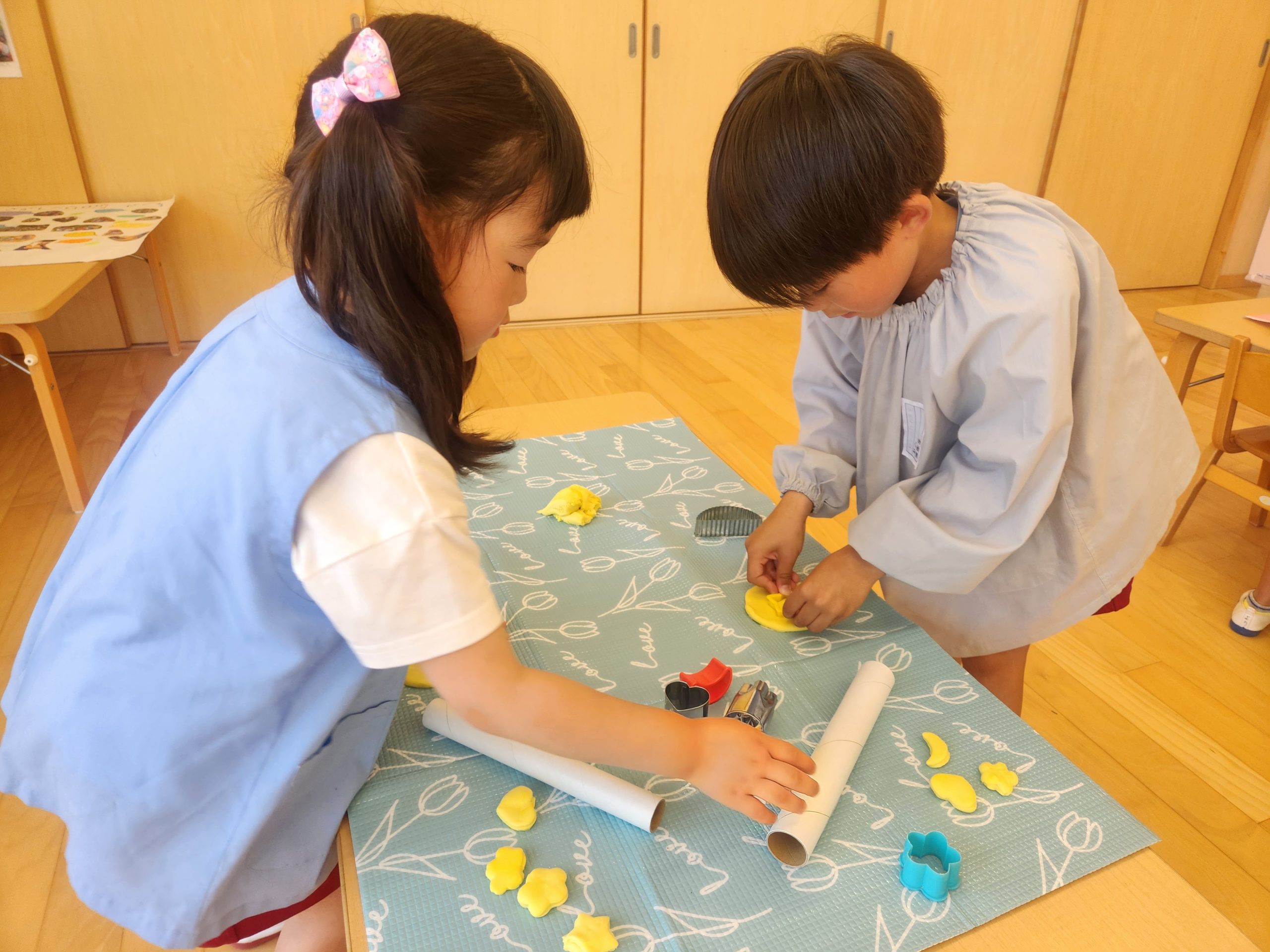 月ごとに素材を準備し、子ども達と一緒に作ってみる中で、わくわく感の中で遊びこんでいきます。