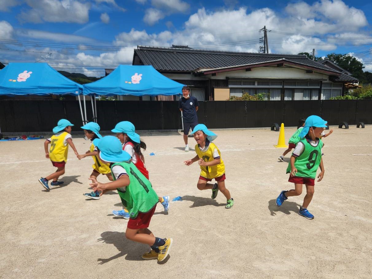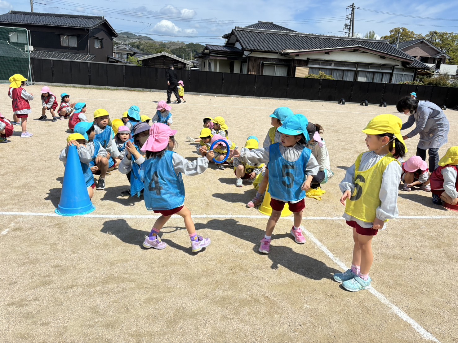 運動会では、ももいろ組(年少)~そらいろ組(年長)が参加するフラワーリレーもあります。