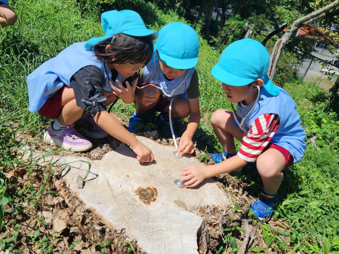 長期休みには、出前講座で講師の先生に来て頂いたり、近くの公園へ遠足に行ったり、園庭で遊んだりと、元気いっぱいに過ごします。 時には、市のバスをお借りして少し遠方へも遊びに行きます。